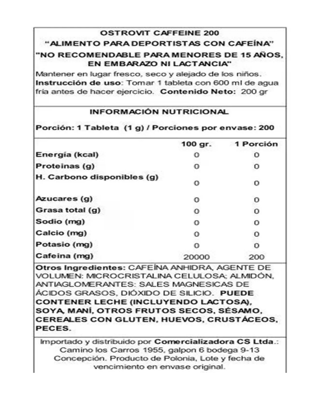 • 200 mg de cafeína en una tableta
